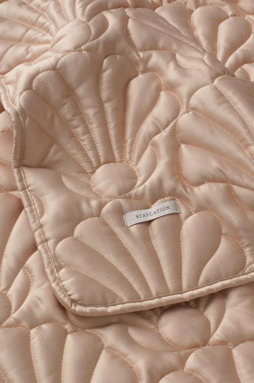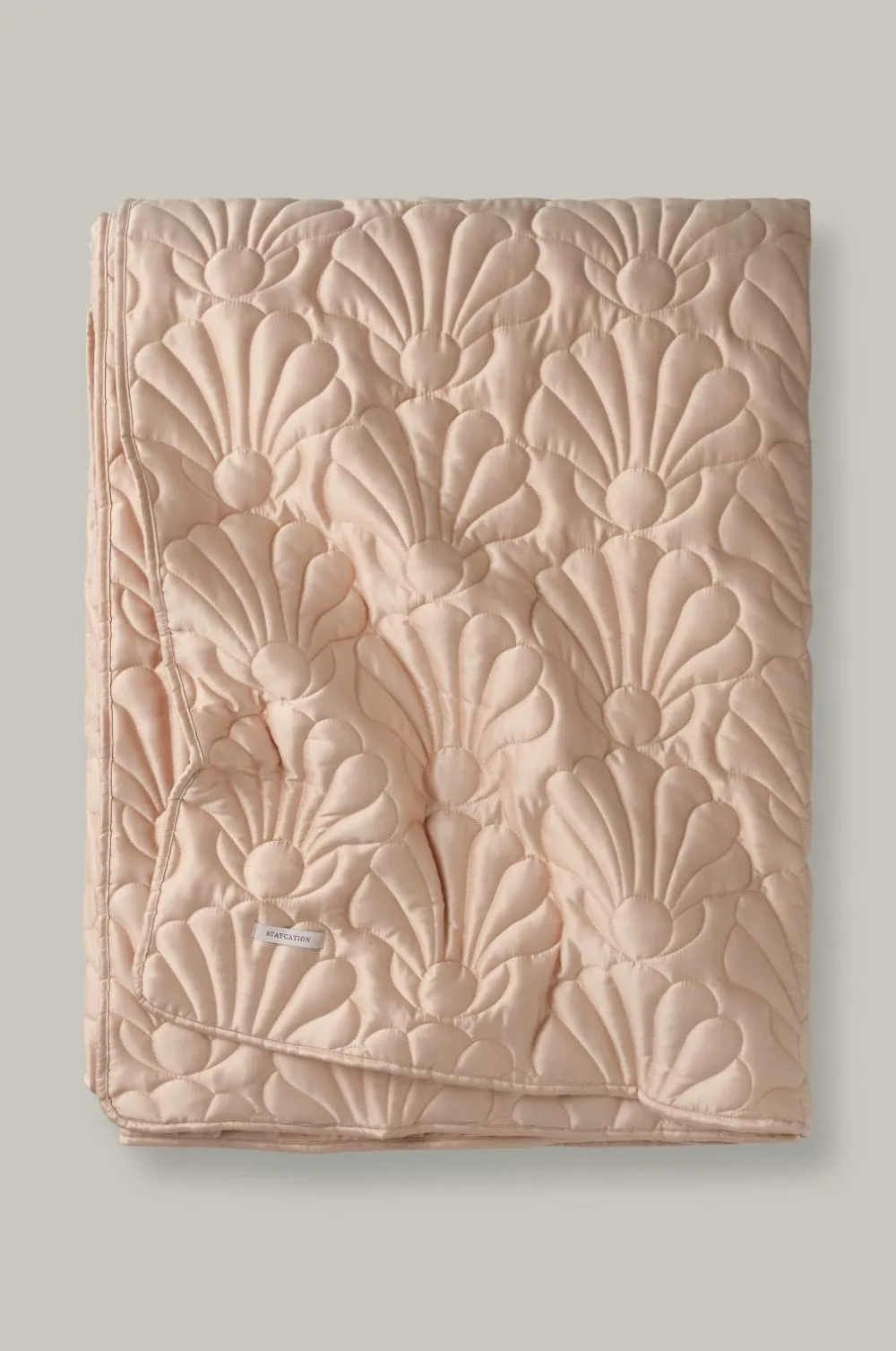 • Quiltet, let foret sengetæppe med muslingeskalsdesign