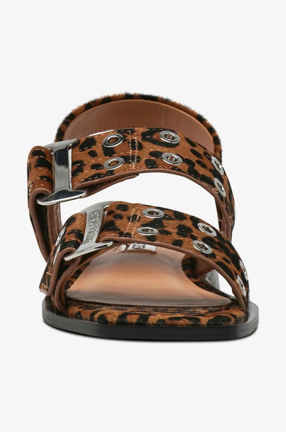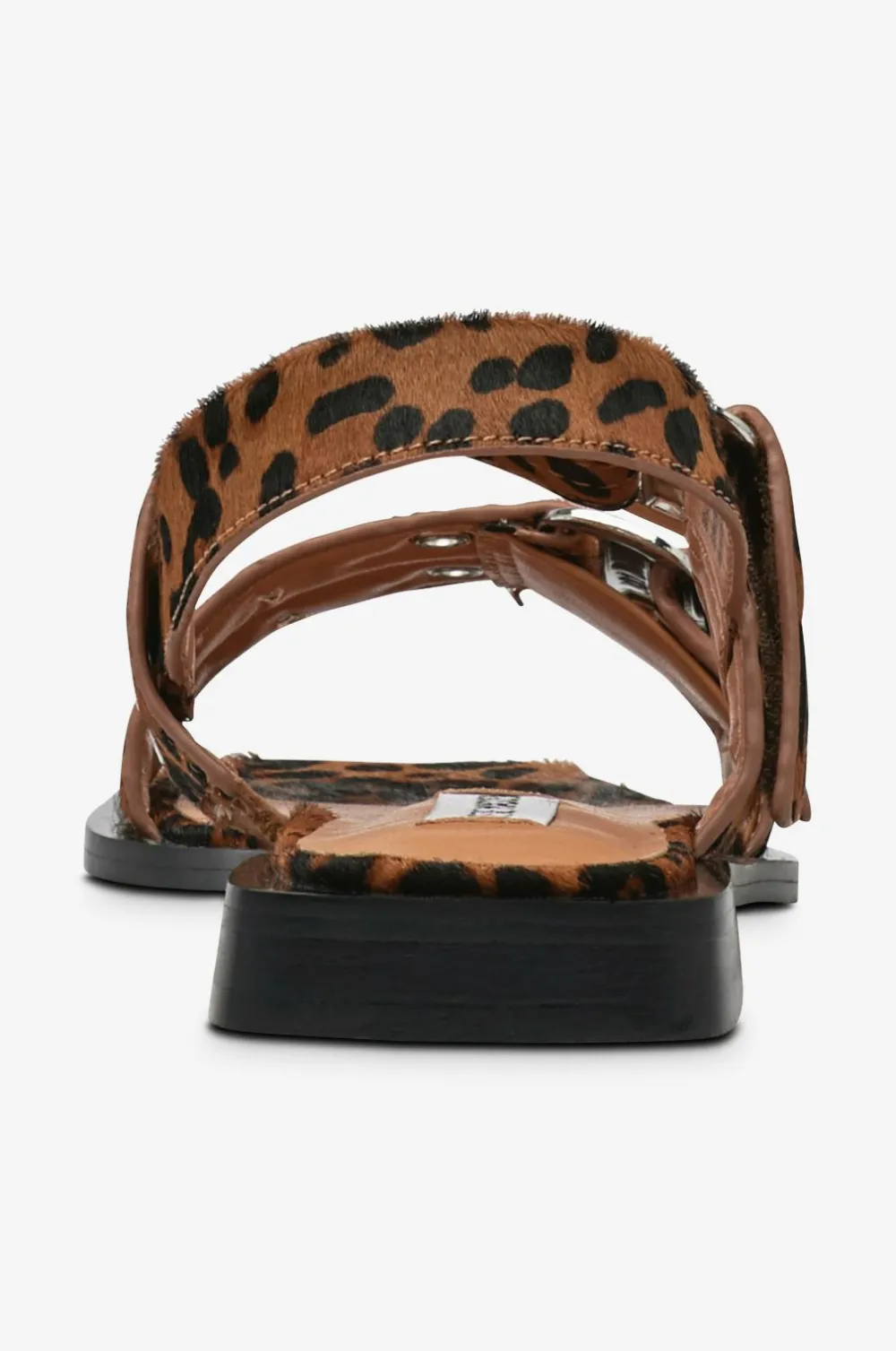• Leopardmønstrede sandaler med lav hæl