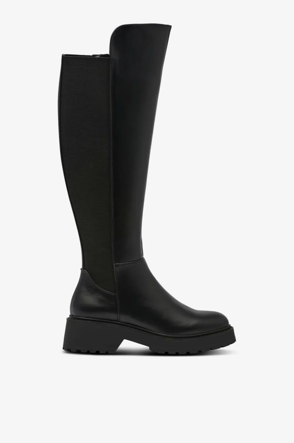 • Model i imiteret læder med brede elastiske paneler bag på skaftet