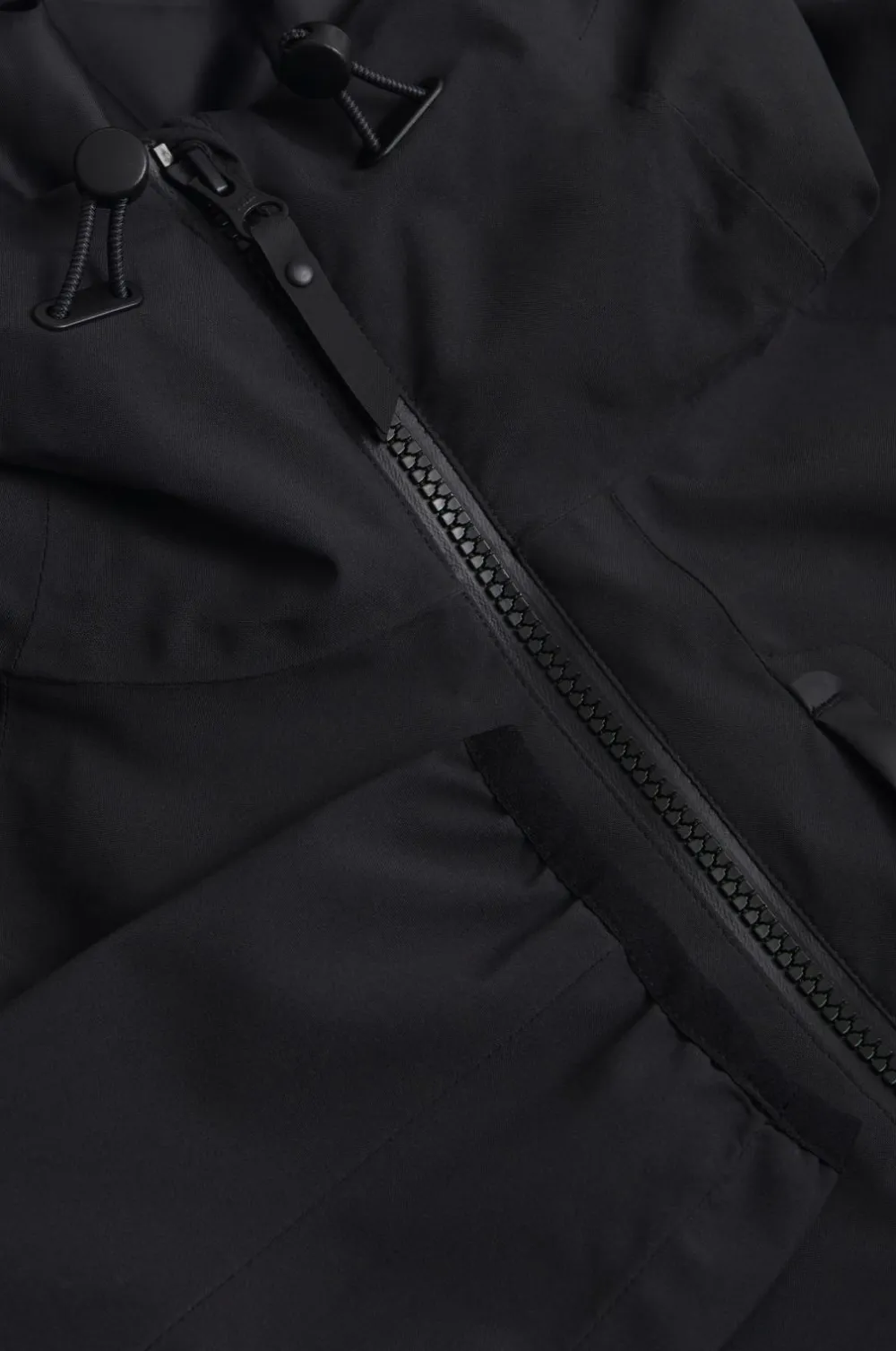 Jakken har hætte med elastisk løbegang og stop samt høj krave med børstet polyester på indersiden. Jakken lukkes med lynlås som er vandtæt. Ergonomisk forbøjede ærmer og justerbar ærmekant med velcroremme. Jakken har en brystlomme, to sidelommer samt en inderlomme.
