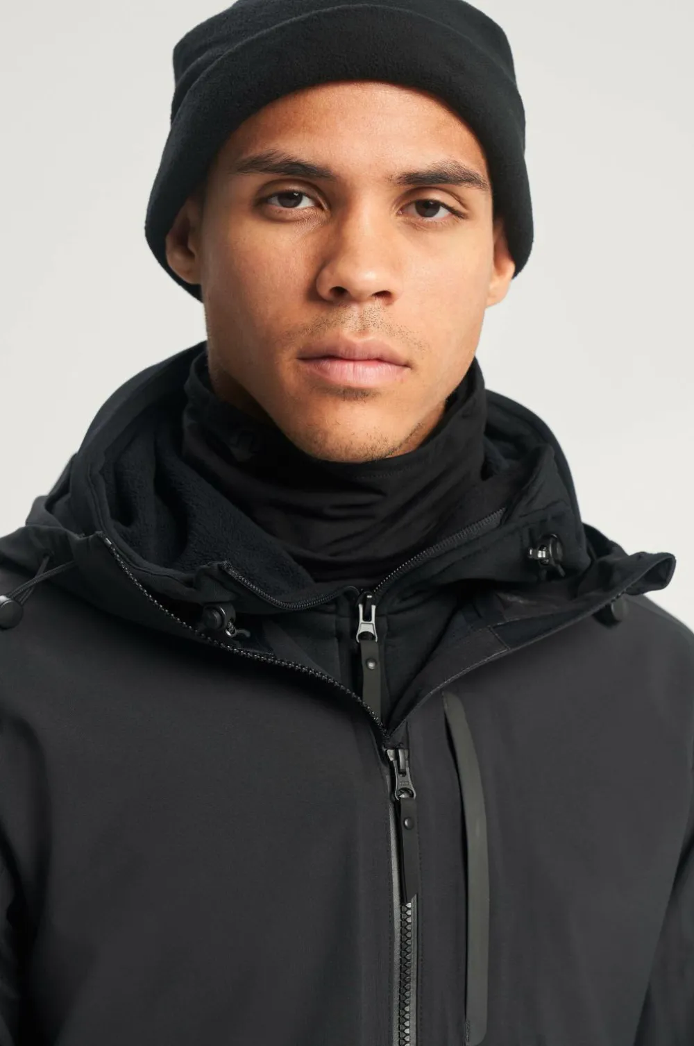 Jakken har hætte med elastisk løbegang og stop samt høj krave med børstet polyester på indersiden. Jakken lukkes med lynlås som er vandtæt. Ergonomisk forbøjede ærmer og justerbar ærmekant med velcroremme. En brystlomme samt to sidelommer som alle er vandtætte. Jakken er uforet og har ingen inderlommer.
