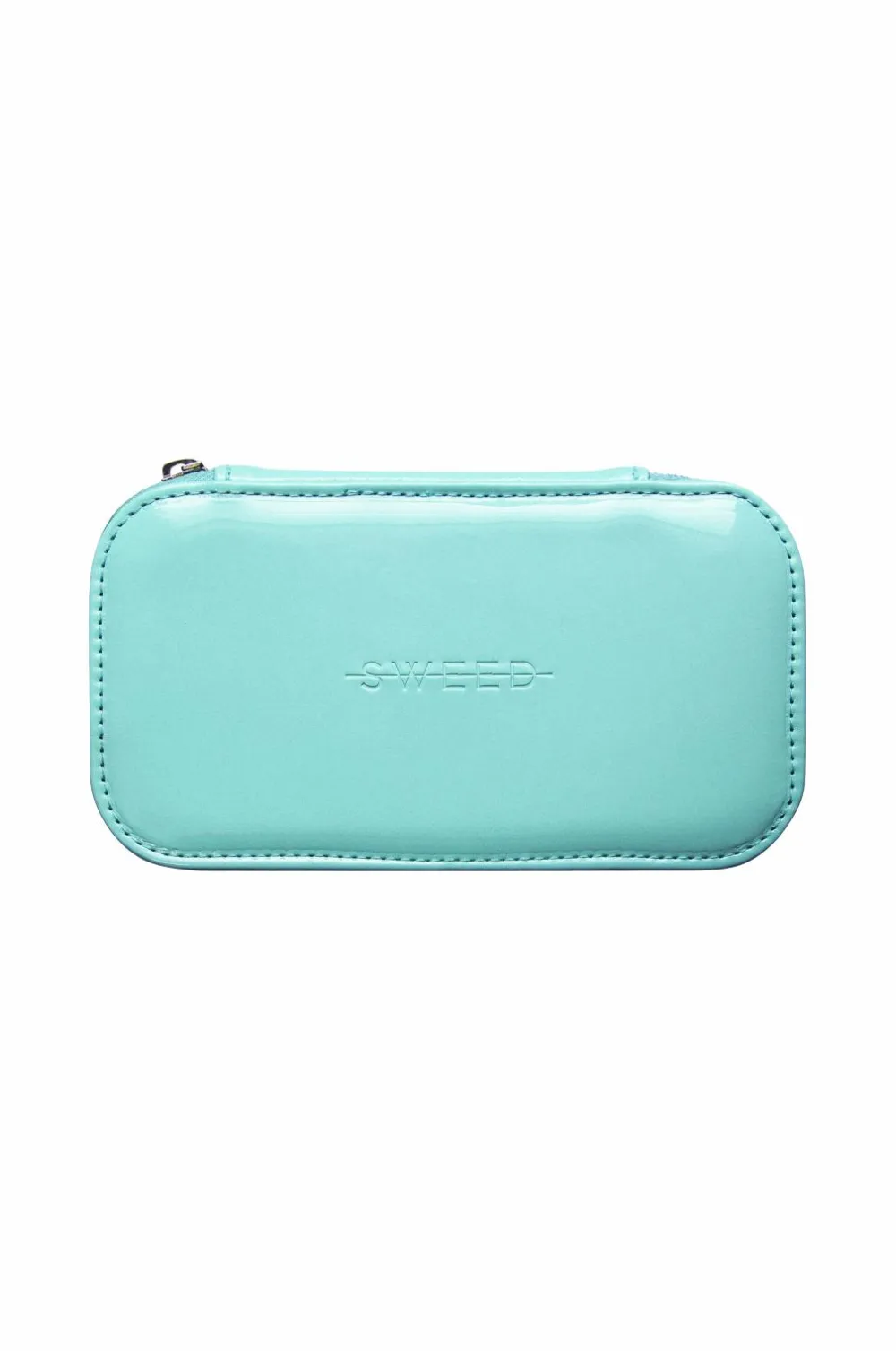 Tasken kommer i vores blå signaturfarve Sweed og har den perfekte størrelse til at passe i håndtasken eller til at tage med på rejser. Skabt til at opbevare dine vigtigste skønhedsfavoritter. Det lille rum i låget er til opbevaring af småting. Det glatte materiale er nemt at holde rent og tørre af. Dette produkt er vegansk og fremstillet af syntetiske materialer.