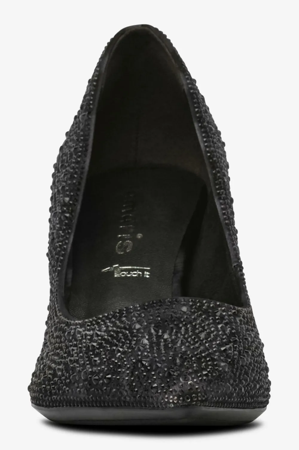 • Øvredel i tekstil med dekorative rhinstene