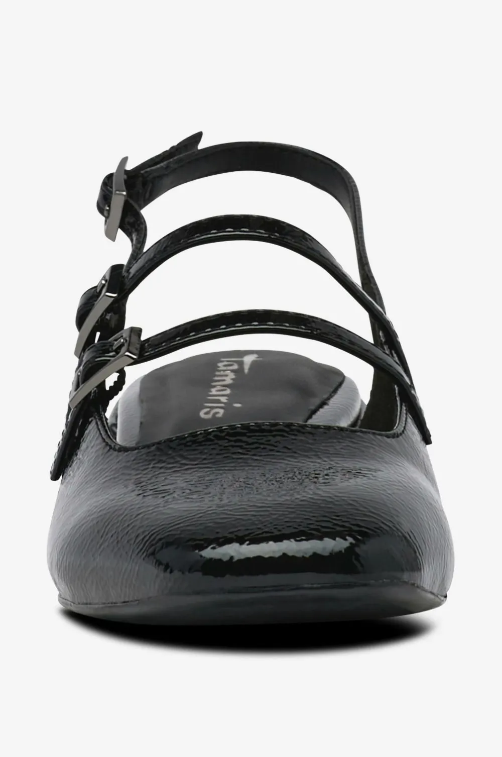 • Slingbacks i blankt, patent imiteret læder