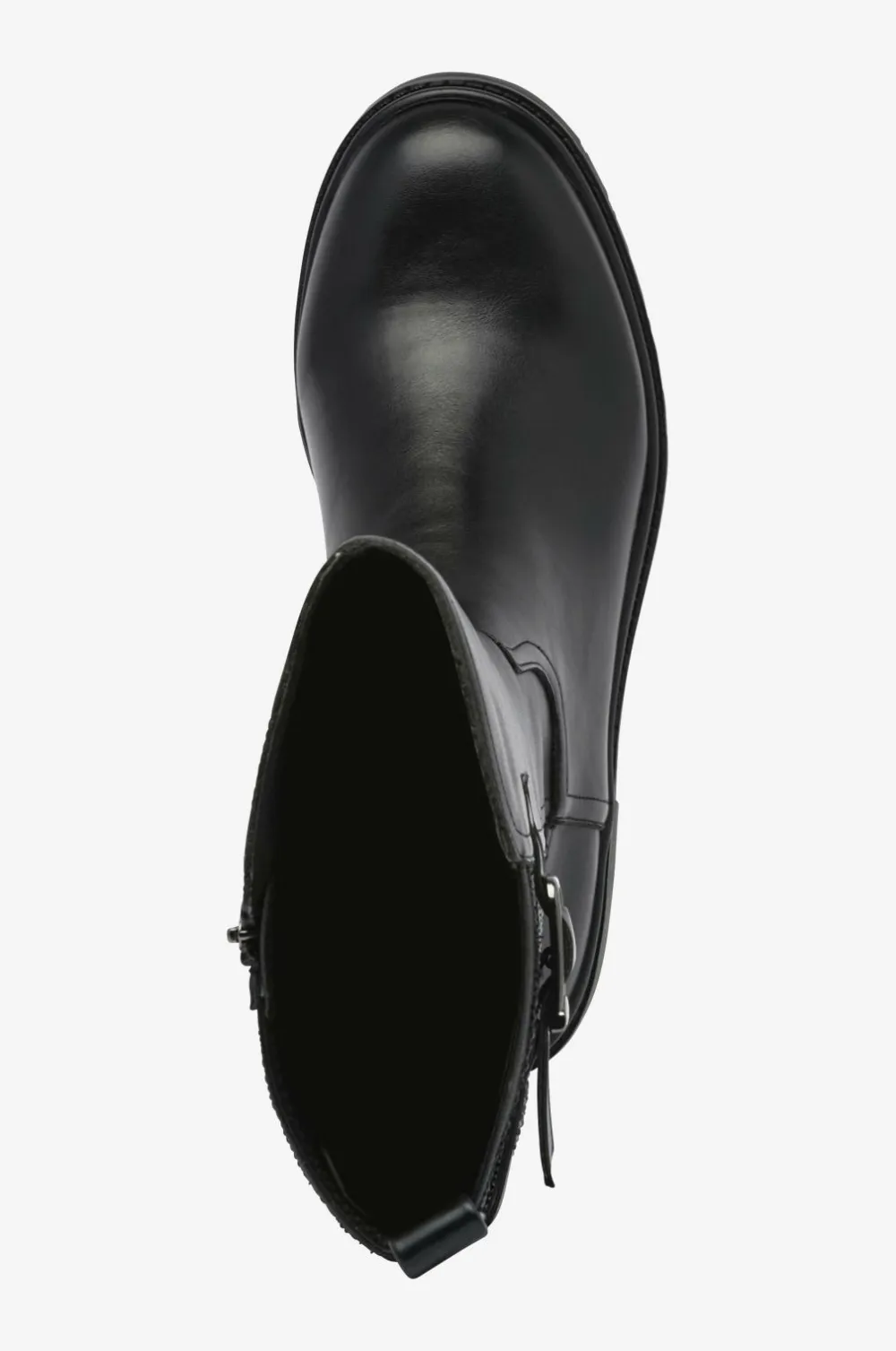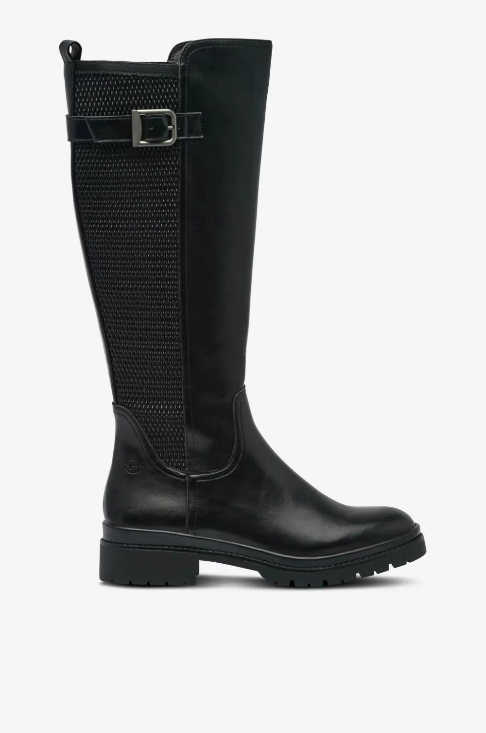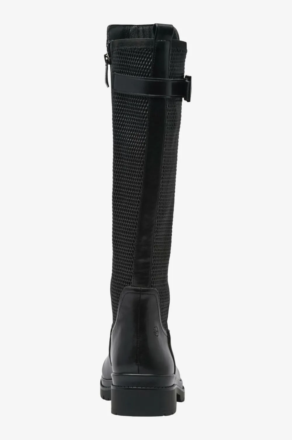 • Øvredel i imiteret læder med beklædt, bredt elastisk panel bag på skaftet