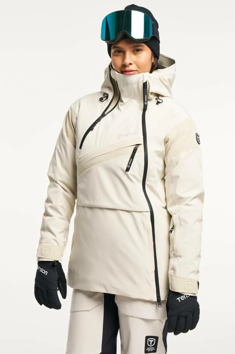 Vindtæt, vandtæt og polstret skijakke i anorakstil med en lang tovejs-lynlås langs venstre side. Alle sømme er tapede og vandtætte. Desuden er jakken meget åndbar, så den kan klare de mere intense aktiviteter.