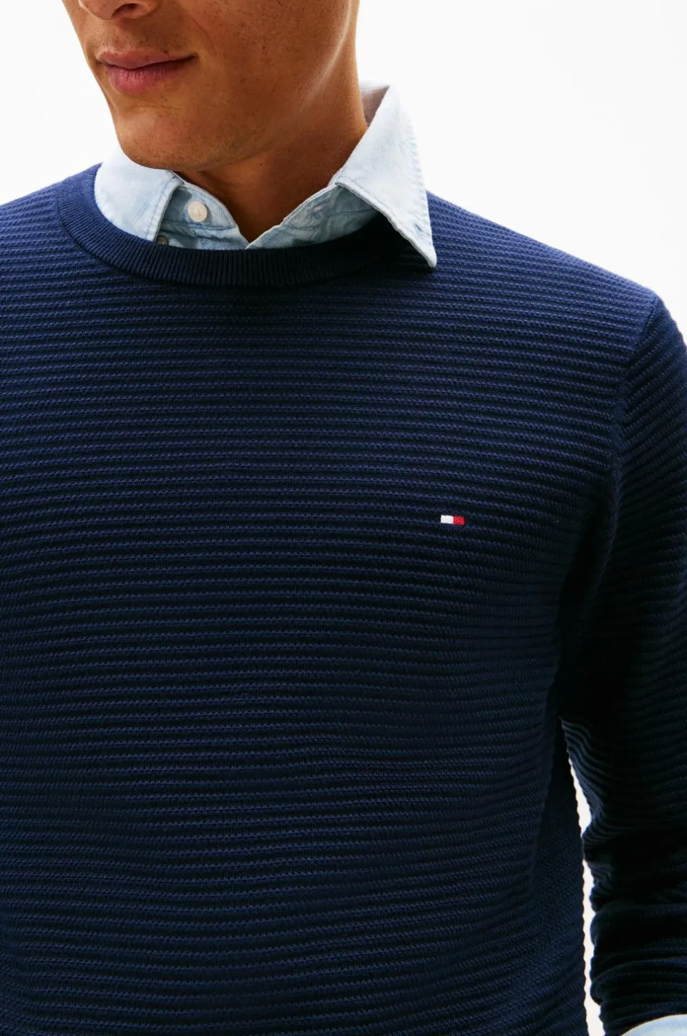 • Strukturstrikket trøje i bomuld