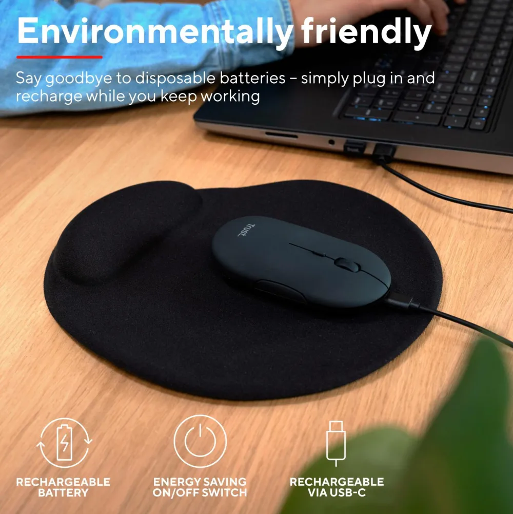 Den genopladelige Bluetooth-mus Puck har en ultratynd profil på kun 27 mm i højden, hvilket gør den nem at have med i enhver taske. Dens slanke design hjælper med at reducere rod og giver dit arbejdsområde et rent udseende.