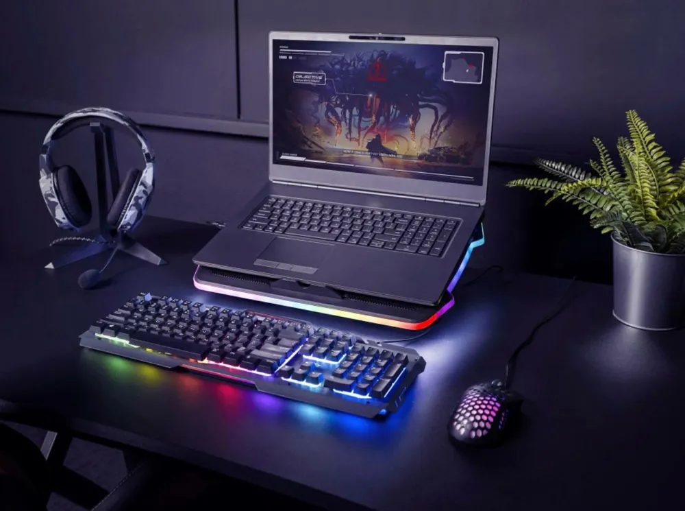 Flerfarvet oplyst kølestativ, der holder din bærbare computer kølig under de mest intense spilsessioner.