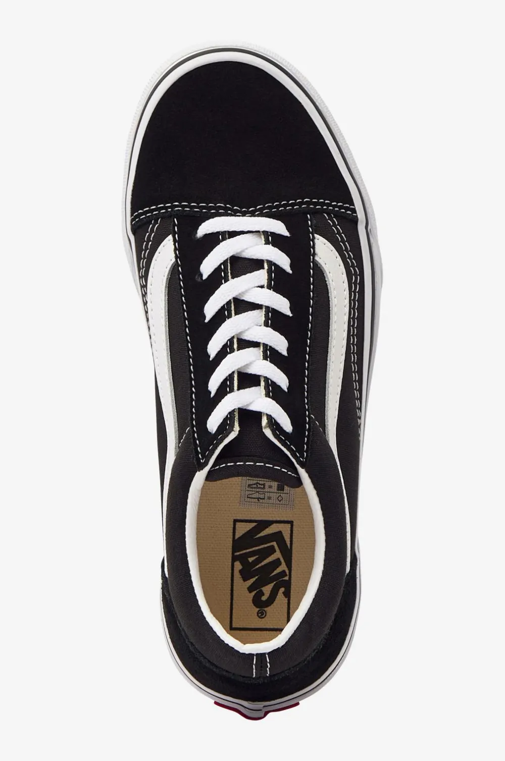 Sneakers Kids Old Skool fra Vans i kanvas med forstærket ruskindsparti på tå, hæl og langs snøren. Kontrastfarvet stribe på siden.