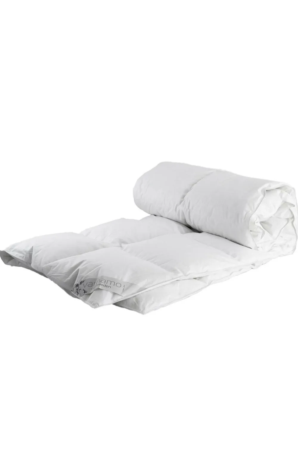 Lilja dundynen er lavet af et stof i 100% bomuld supercambric med en trådtæthed på 280 tc. Stoffet gør, at dun og fjer ikke trænger igennem. Fyld af 90% pyrenæisk andedun og 10% fjer. Kantet med hvidt kantbånd. Dynen er syet i kassetter med kanalvægge. Så isolerer dunene uden at der opstår kuldebroer. Dunene plukkes ikke fra levende fugle. Dette styres og reguleres via Traumpass kontrolinstituttet. Tæppet er nomite-certificeret, hvilket betyder, at det er et allergisikkert produkt.