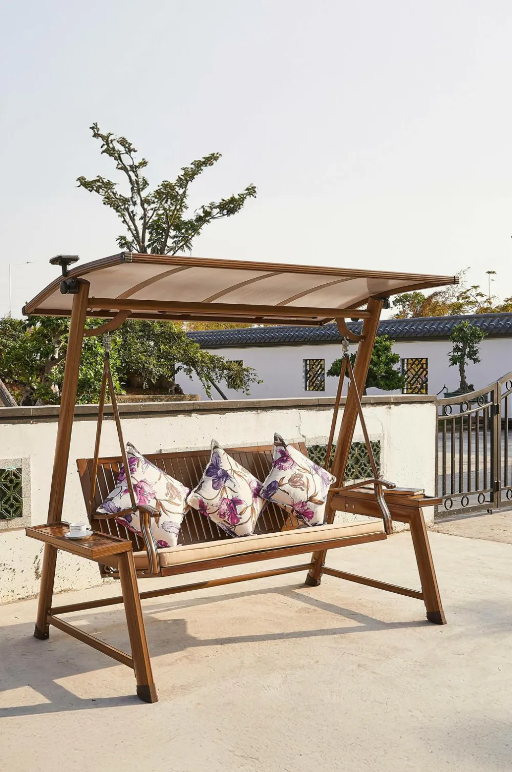 Nyd fredelige øjeblikke udendørs i vores vidunderlige odivelas-hængekøje – den ultimative destination for komfort og afslapning. Denne fantastiske hængesofa er lavet af smukt teaktræ og har plads til to personer, perfekt til hyggelige samtaler under solen eller stjernehimlen.