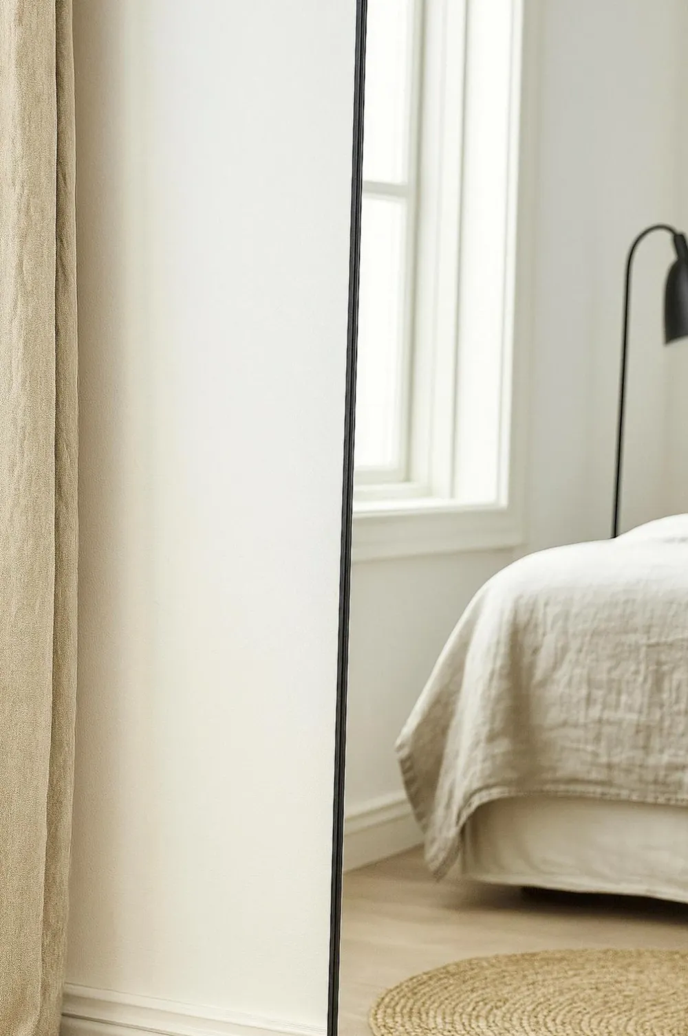 Dalton er et elegant spejl i fuld længde med en tynd sort ramme, der giver et moderne og minimalistisk indtryk. Med sine generøse mål på 100 cm i bredden og 193 cm i højden skaber spejlet en fornemmelse af plads og lys i rummet, samtidig med at det fungerer som en praktisk og dekorativ indretningsdetalje.