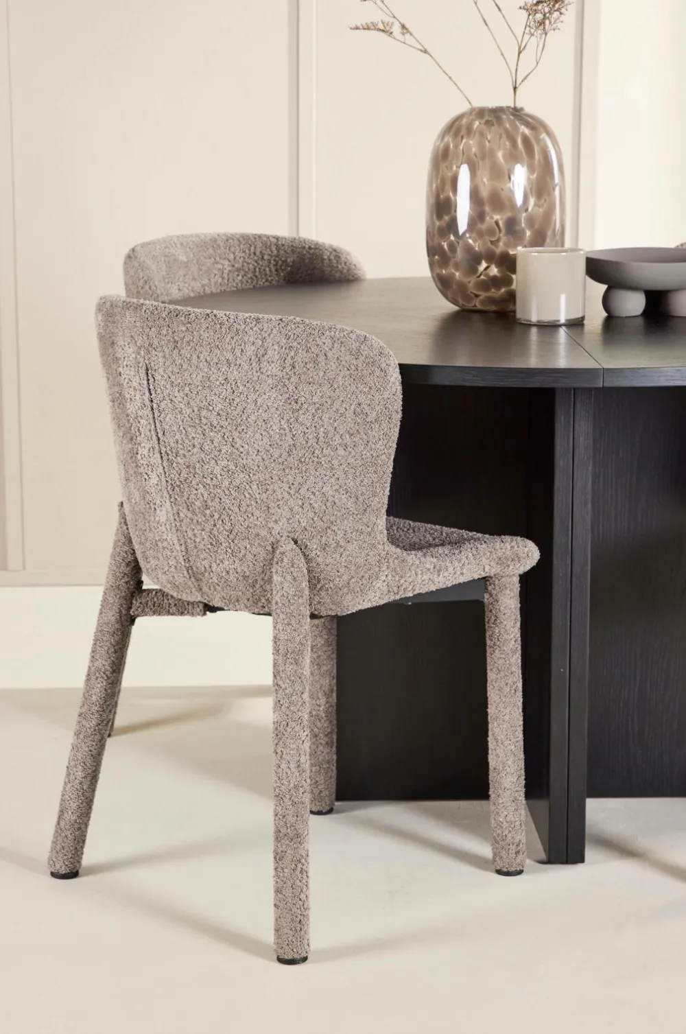 Astoria-spisestolen er betrukket med blød, struktureret bouclé, der giver den perfekte blanding af stil og funktionalitet til at skabe en varm og indbydende atmosfære omkring dit spisebord. Den luksuriøse tekstur passer til både moderne minimalisme og klassisk elegance. Med sit ergonomiske ryglæn og behagelige sæde giver stolen en støttende og afslappende siddeplads, der gør hvert måltid til en behagelig oplevelse. Det tidløse design og den gennemtænkte komfort gør astoria til en enestående tilføjelse til din spisestue.