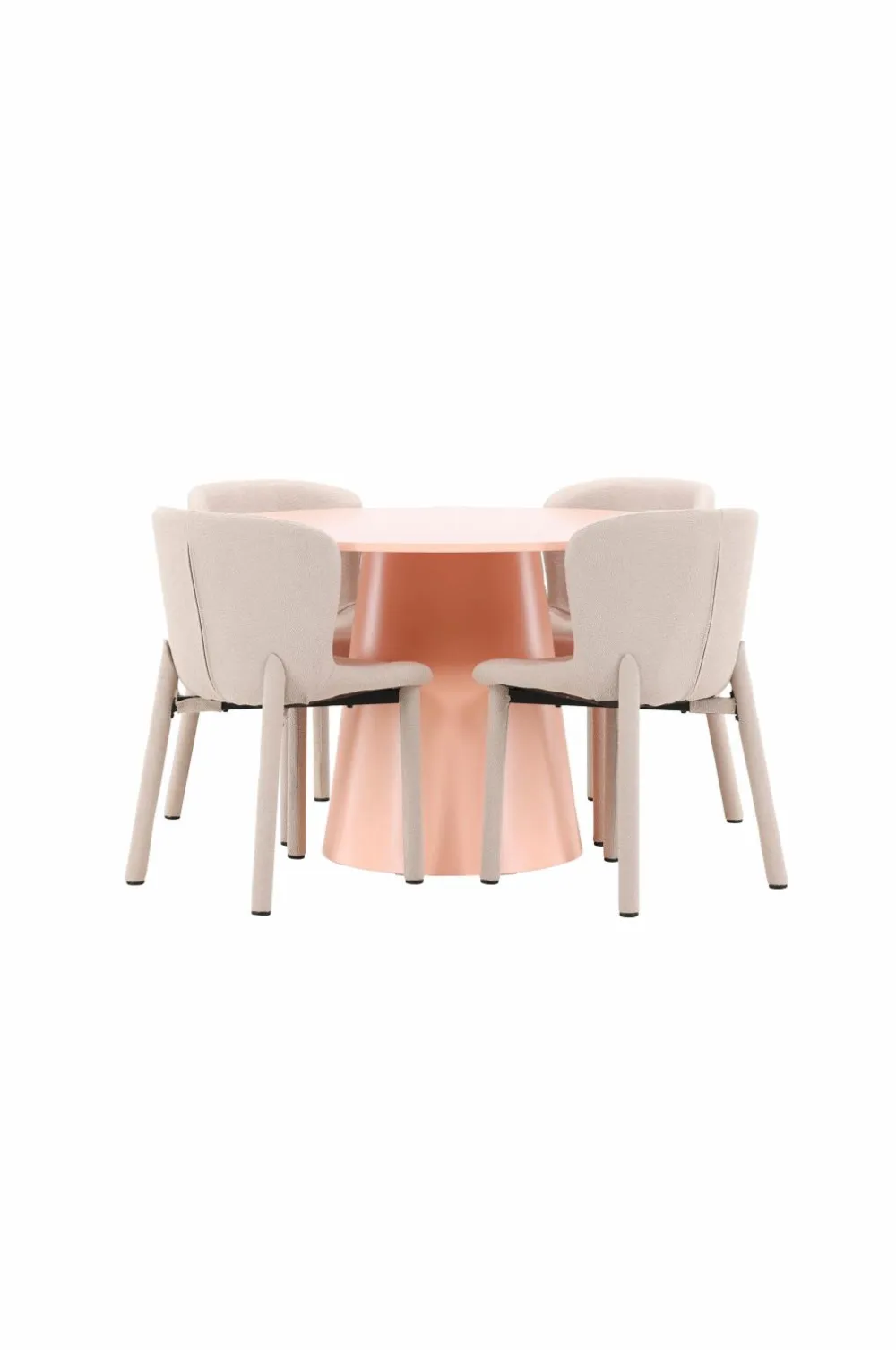 lanzo-spisebordet giver et frisk og moderne touch med sin fantastiske, fint forarbejdede finish. Med en diameter på 120 cm balancerer bordet perfekt mellem funktionalitet og æstetik og danner en ideel ramme om både hverdagsmåltider og festlige sammenkomster. Det ensartede design, der strækker sig over både bordplade og ben, skaber et blødt og harmonisk look, der naturligt tiltrækker sig opmærksomhed som et fokuspunkt i dit hjem. Den runde form indbyder til samvær og gør bordet perfekt til sociale lejligheder og dejlige måltider.