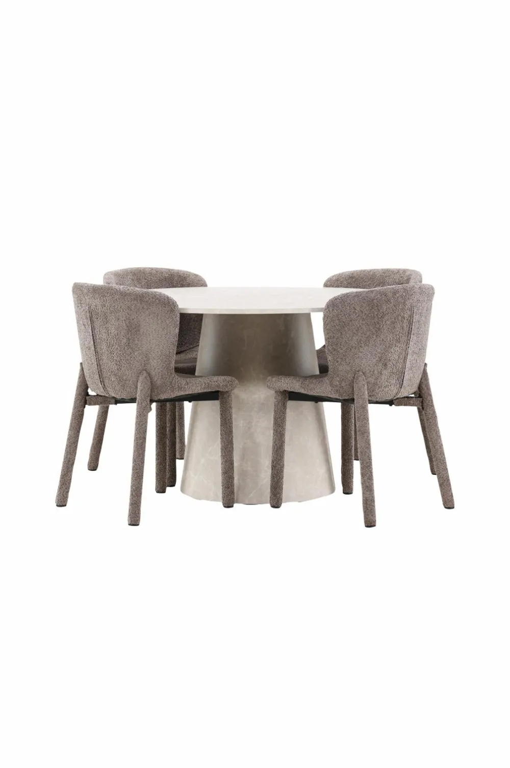 Løft din spiseplads med den stilfulde og elegante kombination af lanzo-spisebordet og astoria-spisestolene – et sæt, der blander tidløst design med sofistikeret komfort.