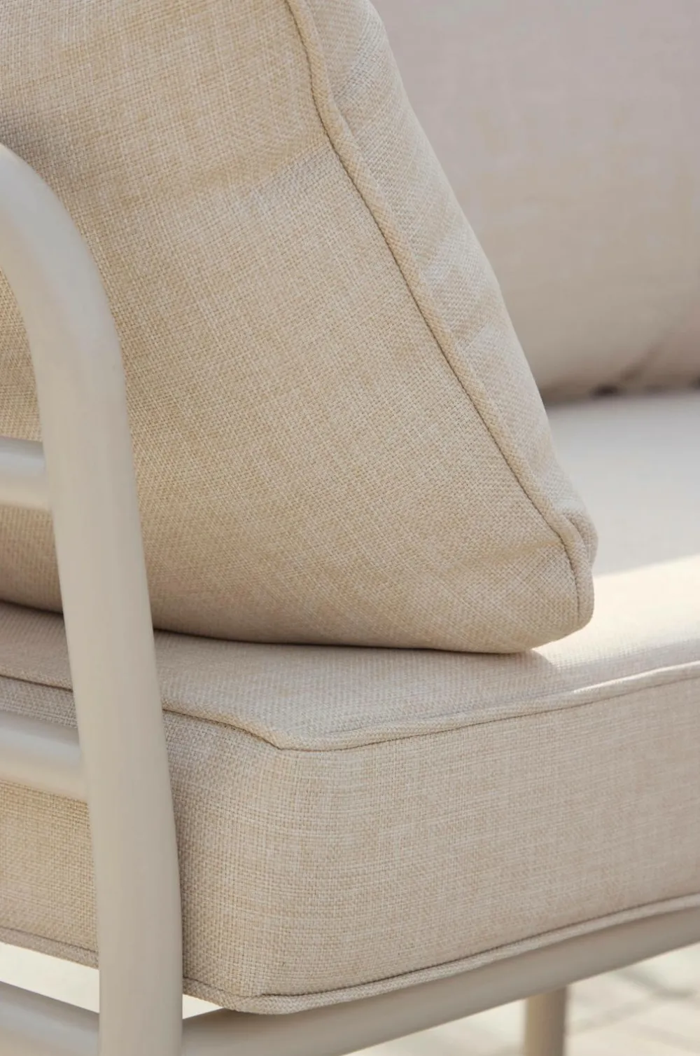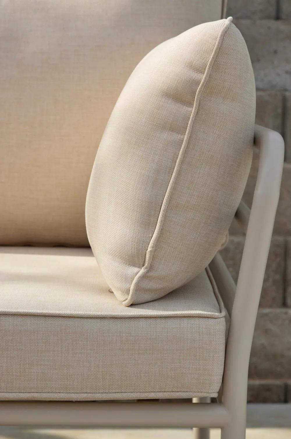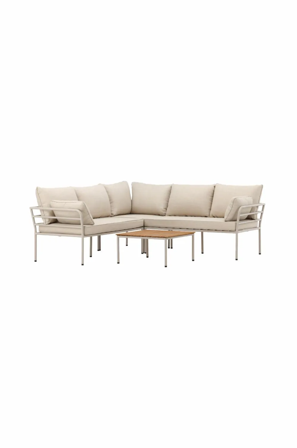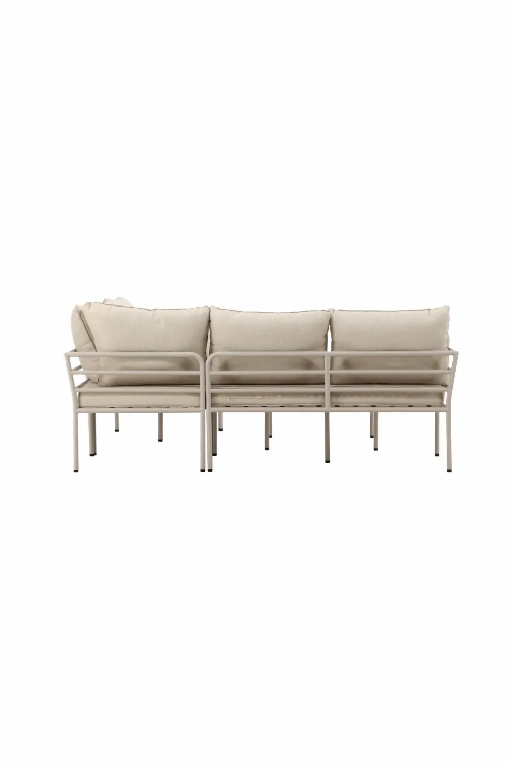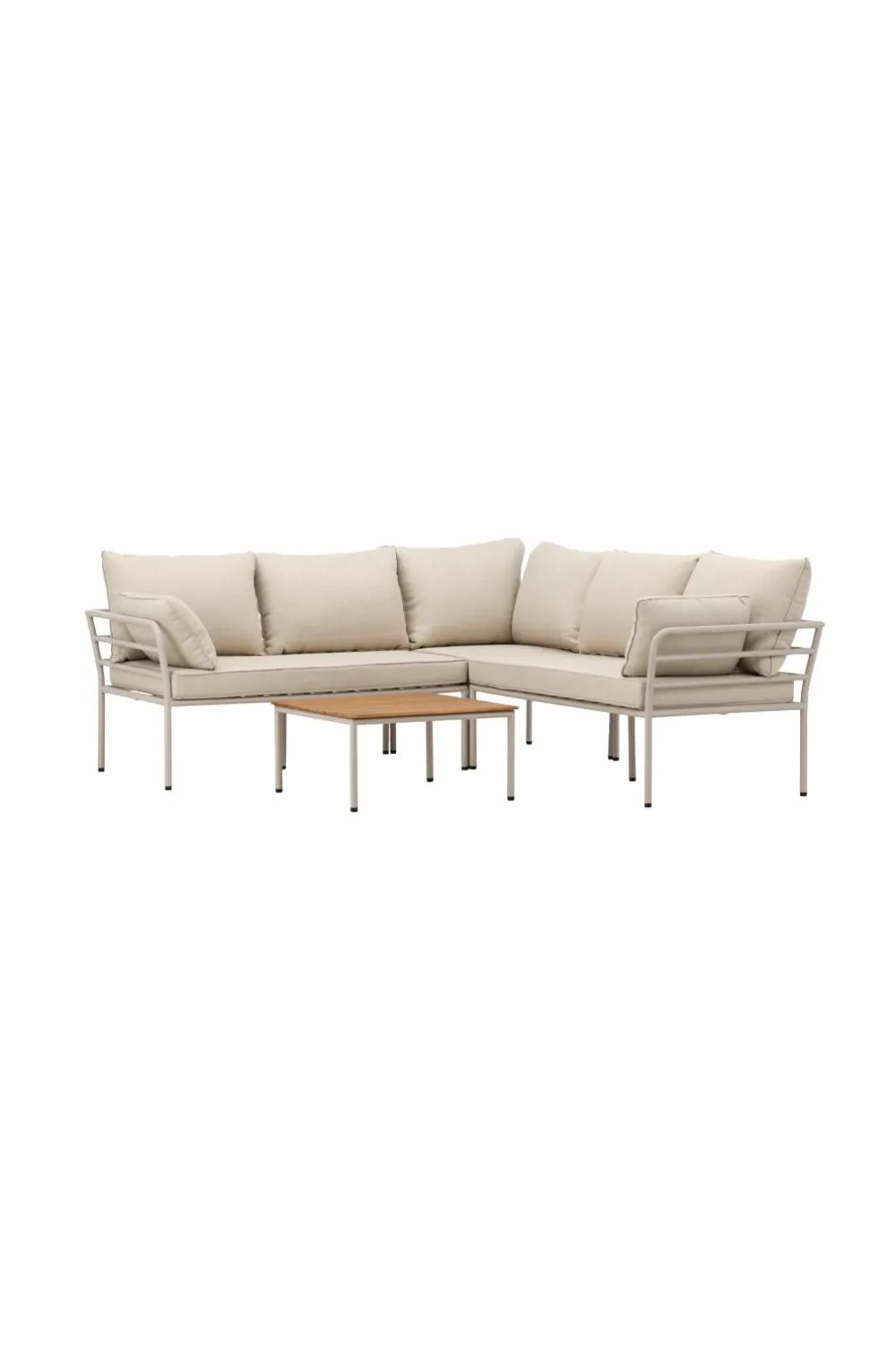 Læn dig tilbage og nyd komforten i denne moderne loungegruppe, der er designet til at passe perfekt ind i dit udendørsmiljø. Den elegante beige/sandfarve skaber en rolig og afslappet atmosfære, mens designet af chaiselong-sofaen giver fleksibilitet og bekvemmelighed til enhver lejlighed.