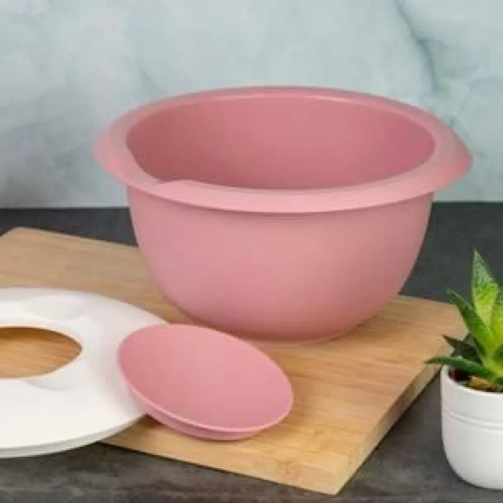 til røremaskinerne, klar, parat, gå! Den klassiske røreskål med todelt låg er perfekt til at blande og røre i madlavnings- og bageingredienser samt til at piske æggehvider og fløde til perfektion. Det delbare låg fungerer som stænkskærm, og med midterforseglingen bliver det til et opbevaringslåg. Gummiringen i bunden sikrer stabilitet på glatte overflader, og det brede håndtag giver et sikkert greb.