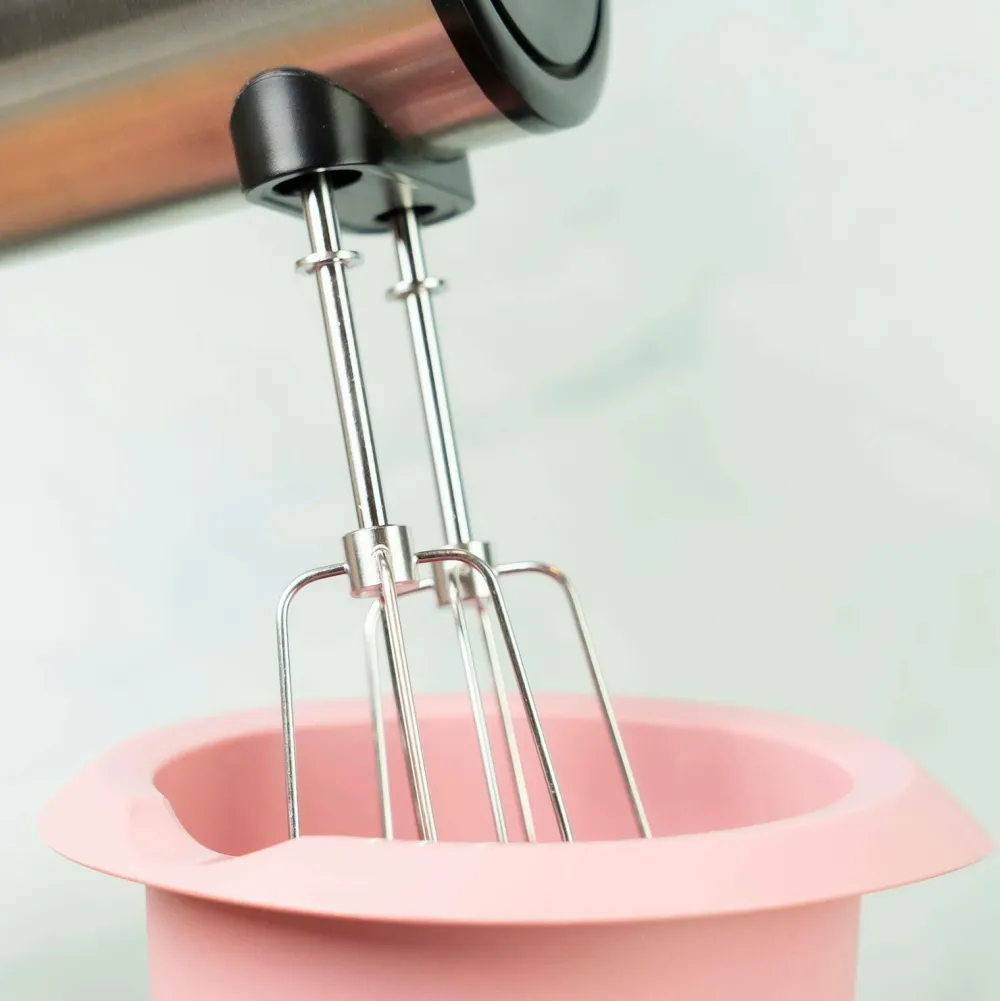 Gør dig klar, sæt i gang, bland! Denne klassiske røreskål uden låg er perfekt til at blande og røre i madlavnings- og bageingredienser samt til at piske æggehvider og fløde til perfektion. Med en kapacitet på 1 liter er den ideel til brug med røremaskiner, der er udstyret med to piskeris. Gummiringen i bunden giver ekstra stabilitet på glatte overflader, mens det brede håndtag hjælper med at holde skålen stabil under brug.