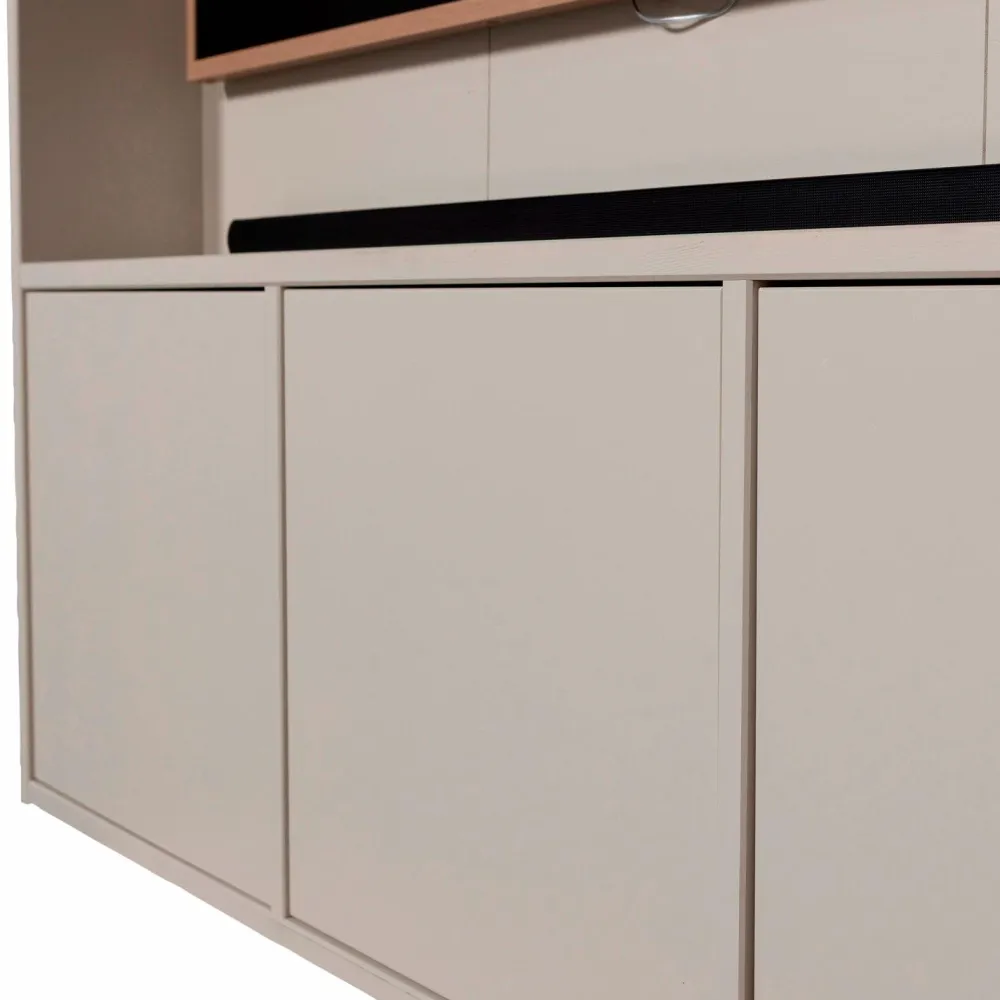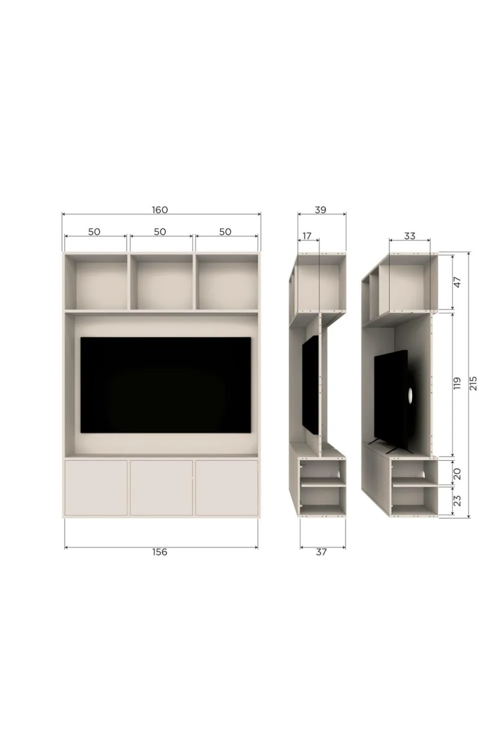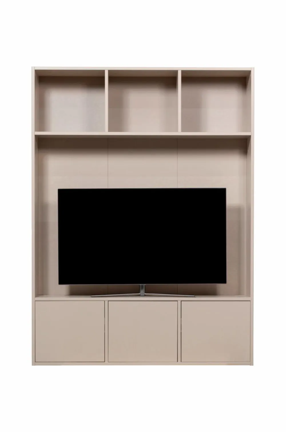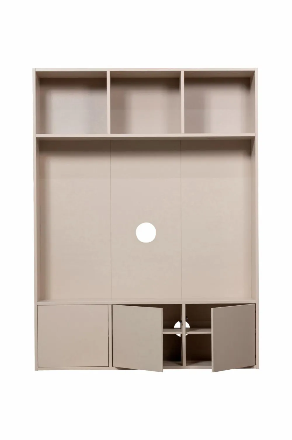 Meggy tv-skabet er lavet af FSC-certificeret fyrretræ og kommer fra den hollandske mærke Wooods kollektion. Meggy har et stilfuldt look med masser af opbevaringsmuligheder. Øverst finder du praktiske åbne rum, hvor du kan udstille din dekoration. Nederst er der låger med push-to-open-system, hvor du stilfuldt kan opbevare ting, der ikke skal være synlige. I midten er der plads til dit tv, hvilket kombinerer funktionalitet og design på perfekt vis. Bagsiden af skabet kan monteres på to måder, så du selv kan vælge, om du vil hænge eller placere dit tv. Vil du få endnu mere ud af din indretning? Kombiner Meggy tv-opbevaringsskabet med de andre elementer fra Meggy-serien for at skabe din ideelle skabsvæg.