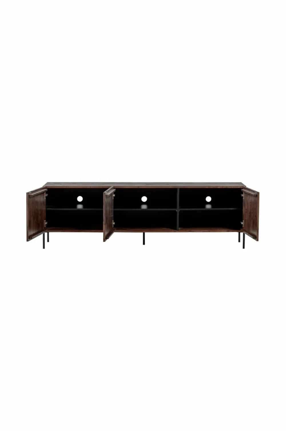 et tidløst design, en varm naturlig træfarve og generøs opbevaringsplads: det er kendetegnene for bono tv-skabet. Det er en stilfuld tilføjelse til ethvert interiør fra den hollandske interiørdesignmærke wooods kollektion. Dette tv-skab er lavet af asketræ og har en bejdset finish, så der kan være forskelle i farve og årer. Det gør hvert møbel unikt! Bag de tre skabsdøre tilbyder møblet masser af opbevaringsplads. Det indre rum er smart opdelt med en hylde, så du nemt kan opbevare dit medieudstyr, tilbehør og andre vigtige ting.