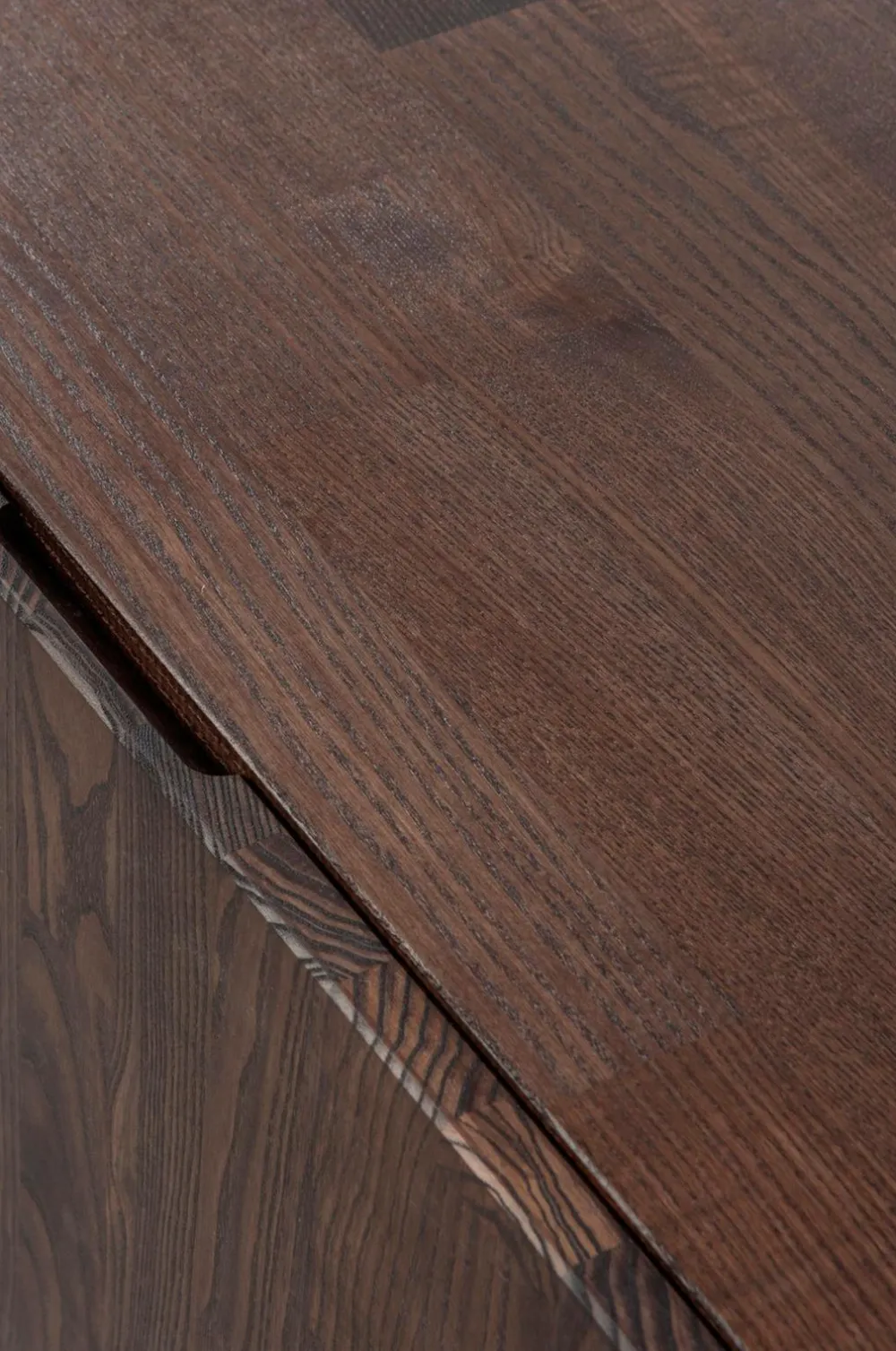 Ask er en lidt blødere træsort med en ren, lige årring. Produkterne i vores kollektioner er beklædt med askfiner. Disse finérstrimler limes på et glat træ og efterbehandles derefter med en bejdse og en transparent, beskyttende belægning.