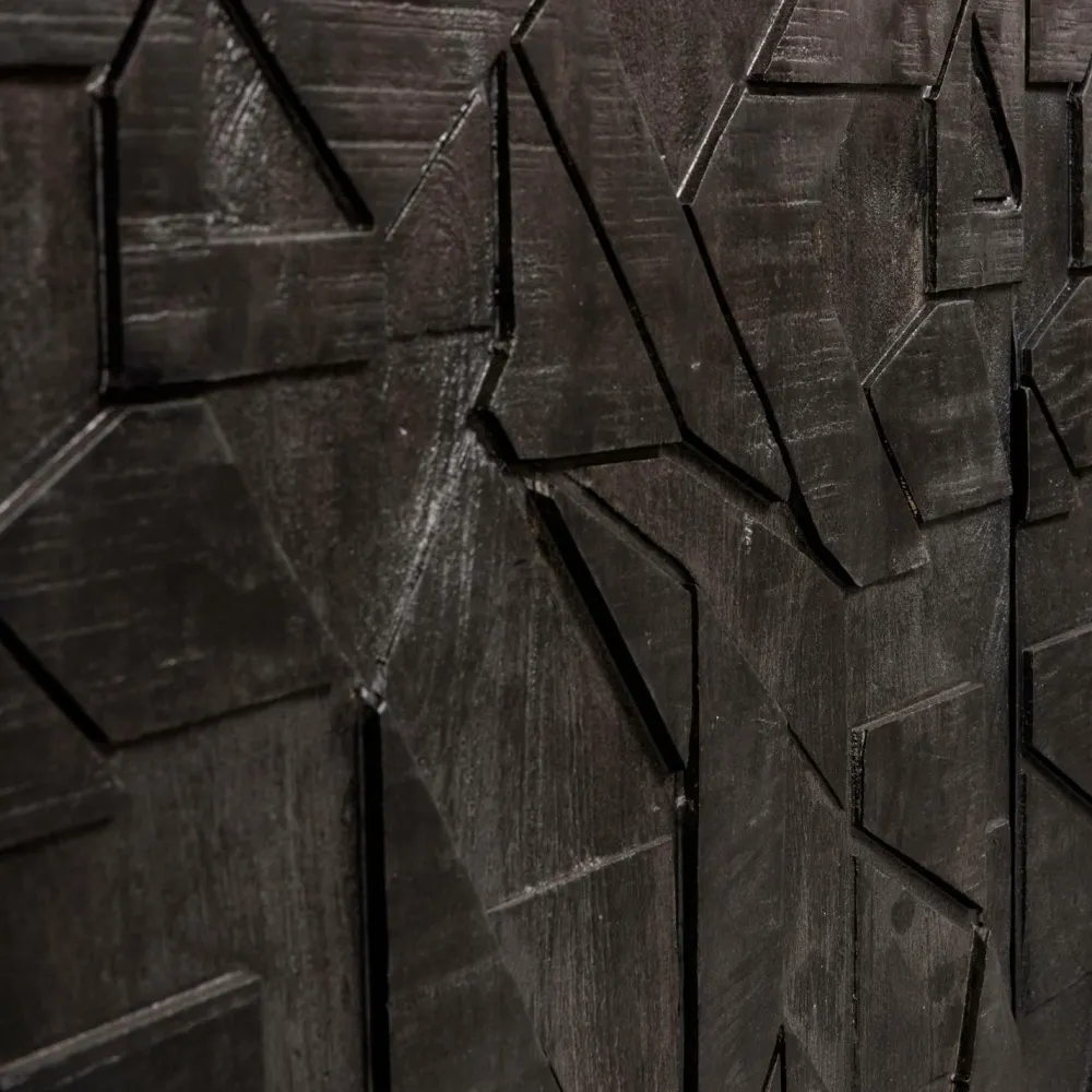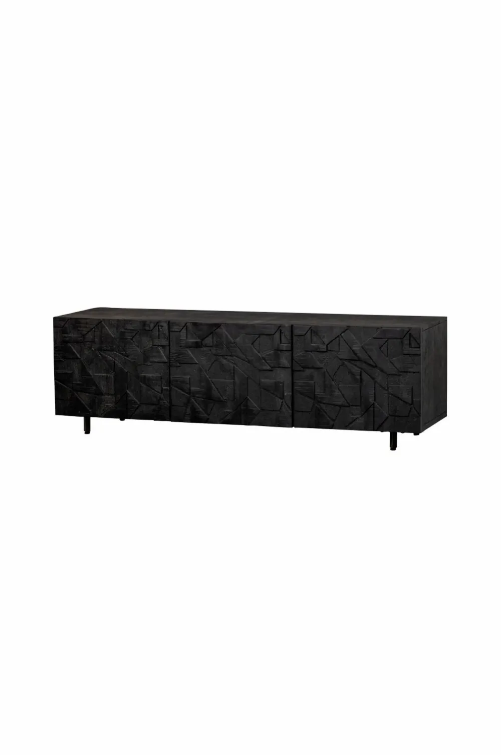 et slående og praktisk tv-skab. Det er denne disk fra bepurehome-kollektionen. Dørene indeholder grafisk dekorerede træudskæringer og er udstyret med et lydløst push-to-open-system.