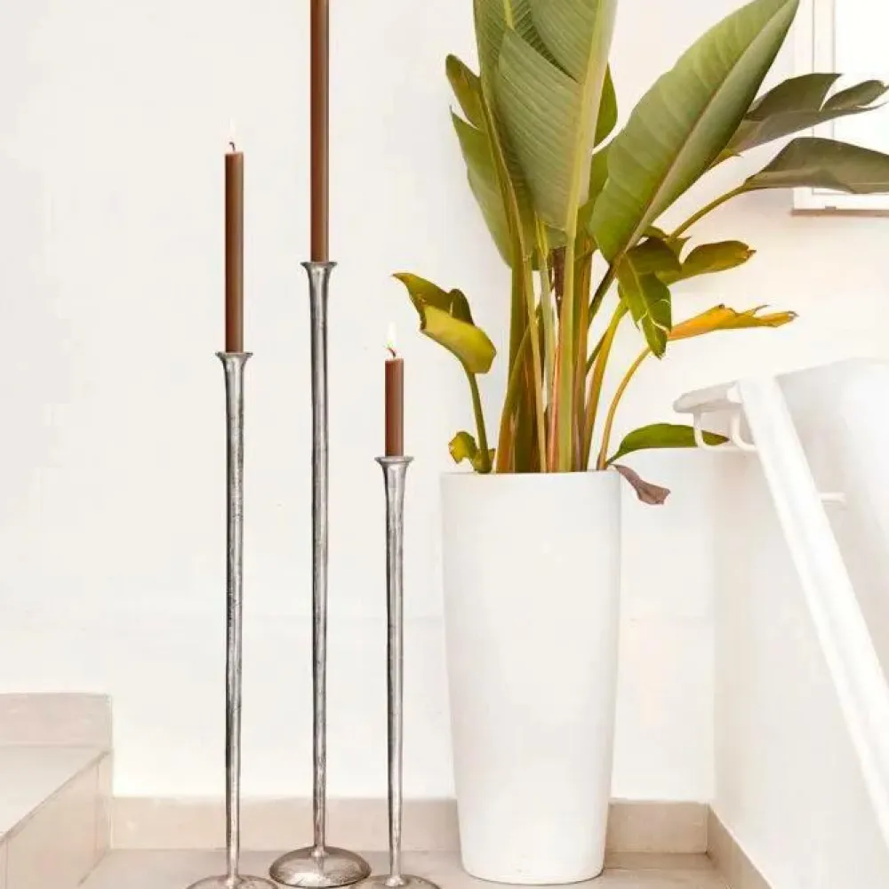 Lad Gallery gulvlysestagerne udfylde et tomrum. Fremstillet af rå aluminium, sæt med 3. Stor 84 cm, mellem 73 cm, lille 60 cm.