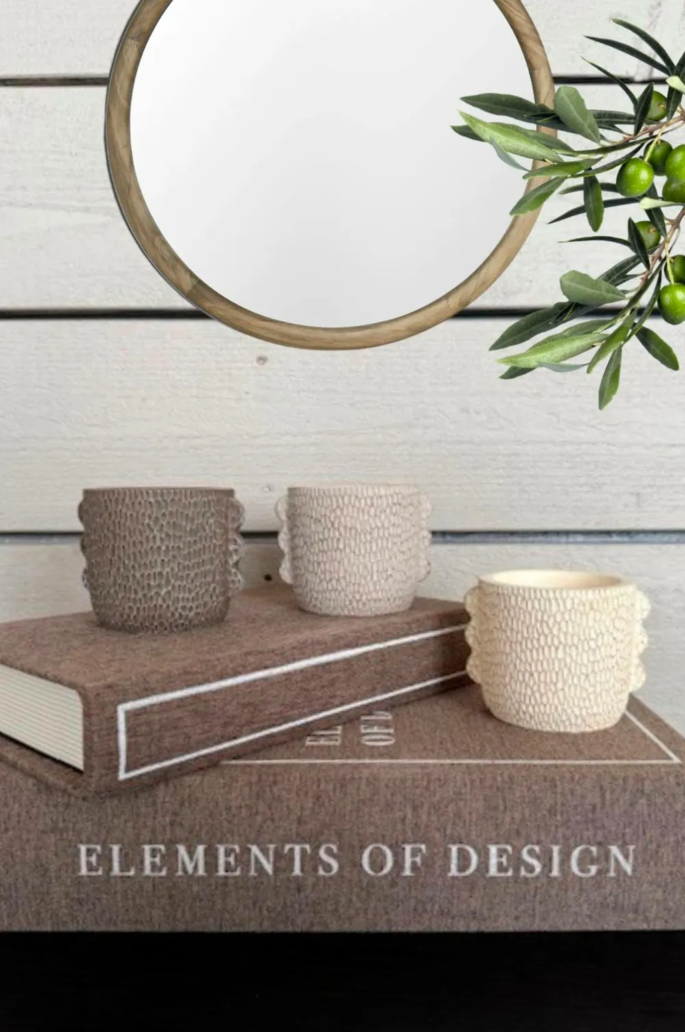Sæt med tre keramiske skåle med en sandet overflade fyldt med voks. Brændetid ca. 20 timer.