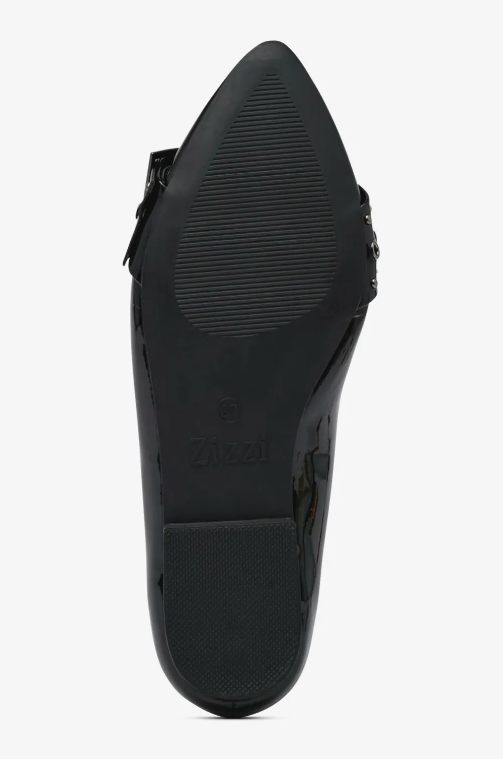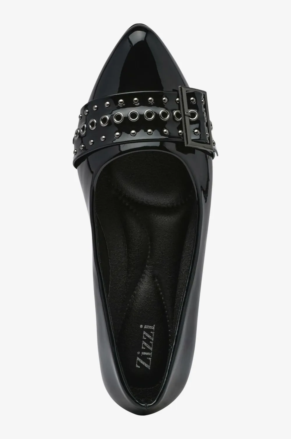 • Bredt bånd over foden med dekoration med nitterer og metallukning