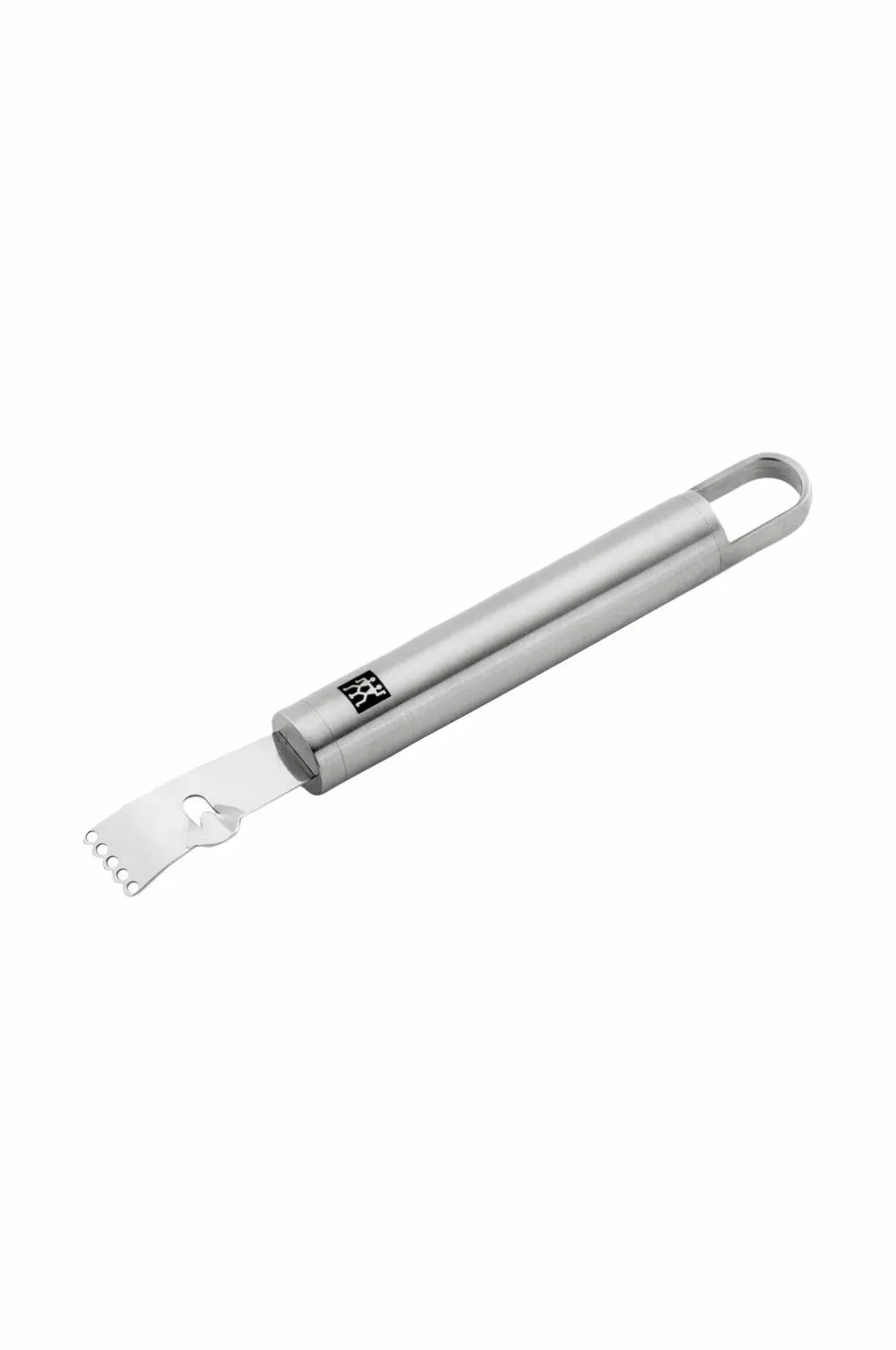 ZWILLING Pro-serien citronskrælleren gør, at du kan lave dekorative strimler af citrusfrugter. To separate skæresektioner til at producere varierende tykkelser med en enkelt citronskal. Samtidig forbliver det bitre hvide skind på frugten. Det elegant formede håndtag trykker ikke ubehageligt i håndfladen. En dekorativ laserlinje fremhæver det minimalistiske look, der kendetegner hele Pro-serien. Fremstillet af rustfrit stål. Kan vaskes i opvaskemaskine.