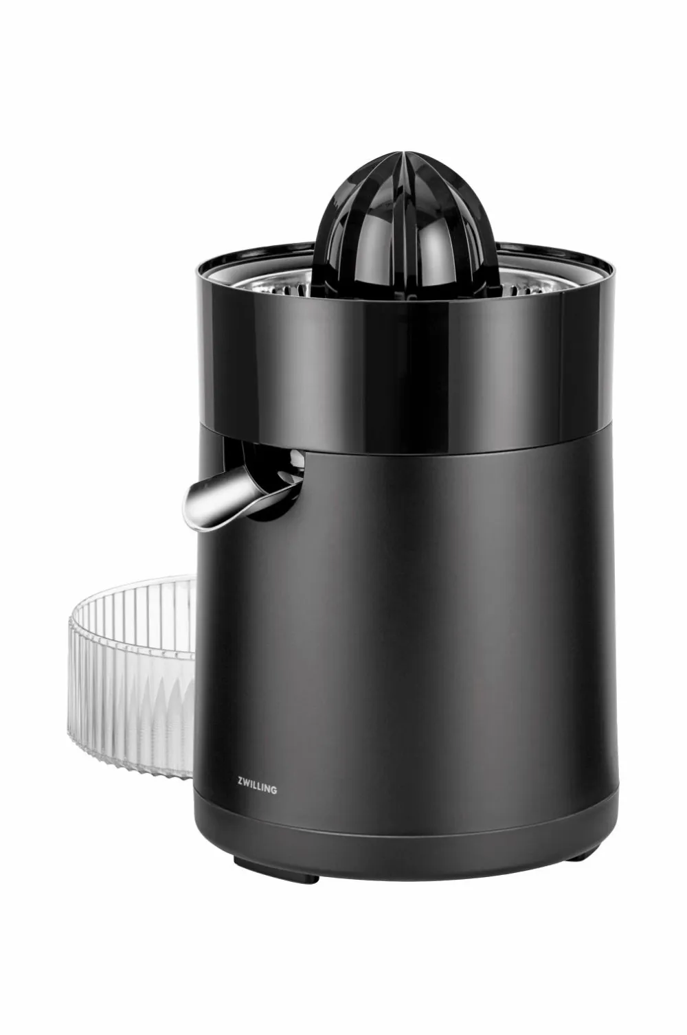 Lav farvepresset juice til frokost med zwilling enfinigy citruspress. Citruspressen har to forskellige presskoner til såvel små lime eller citroner som store apelsiner og blodapelsiner. Placer en halva på toppen og start modorn med et knaptryk. Du kan selv bestemme, om du vil have frugtkød eller ej. Den lutende hällpipen låter juicen rinna direkt ner i glaset utan spill eller dropp.