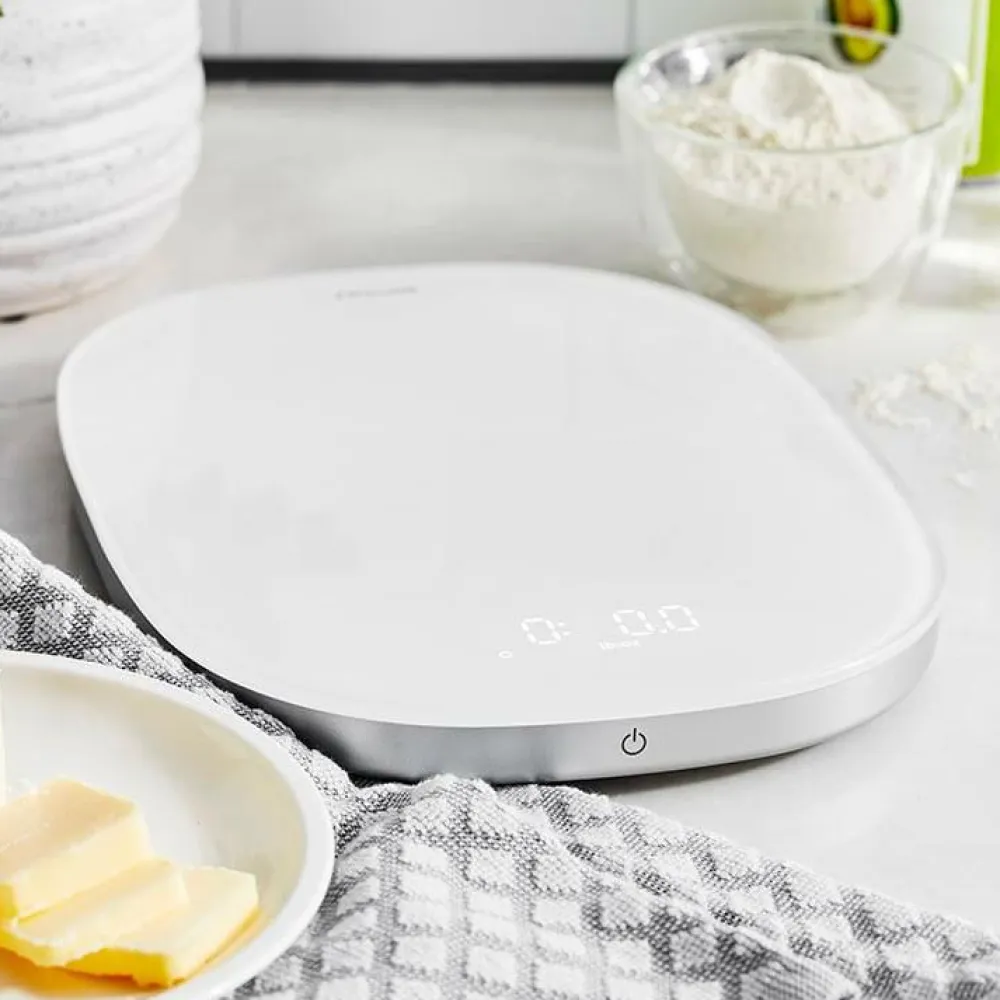 Zwilling Enfinigy køkkenvægt kan klare en vægt på op til 10 kg, indbygget genopladeligt Li-ion batteri med medfølgende ladekabel. Vægtfunktion (Tara) 1 g / 0,1 oz. valgbart. Stor øvre glasflade uden forhindringer med tydeligt LCD-display. Vægten har en touch-knap til betjening og automatisk nedlukning. 5 års garanti ved produktregistrering.